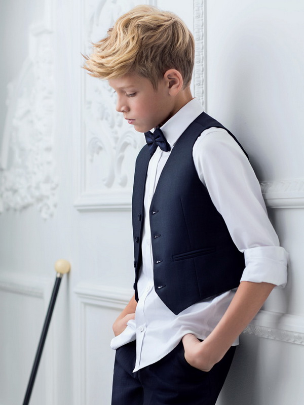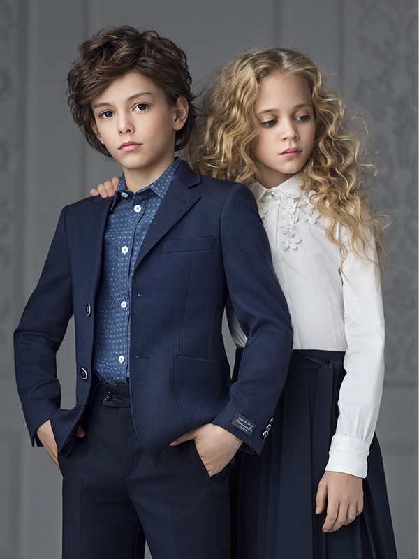 Школьная одежда для мальчиков в этом сезоне выдержана в лучших английских традициях. И это не удивительно, ведь такой наряд способен уже с раннего возраста сформировать вкус у юных модников. Поэтому дизайнерский бренд одежды Silver Spoon разработал для мальчиков практичные классические костюмы глубокого синего оттенка. Они представлены брюками прямого или слегка зауженного кроя, стильными жилетками и пиджаками приталенного фасона с одной или двумя пуговицами.