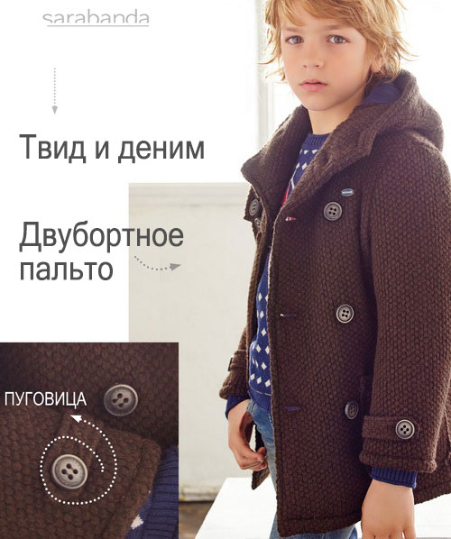 Мальчикам стоит обратить внимание на одежду, которая удобна и при этом придает аристократичность образу - пальто в сочетании с джемпером и джинсами. Прекрасный образ для холодных дней, в котором стиль не принесен в жертву комфорту. Теплое двубортное пальто из джерси, мягкий джемпер актуальной жаккардовой вязки и классические джинсы-стрейч с потертостями.