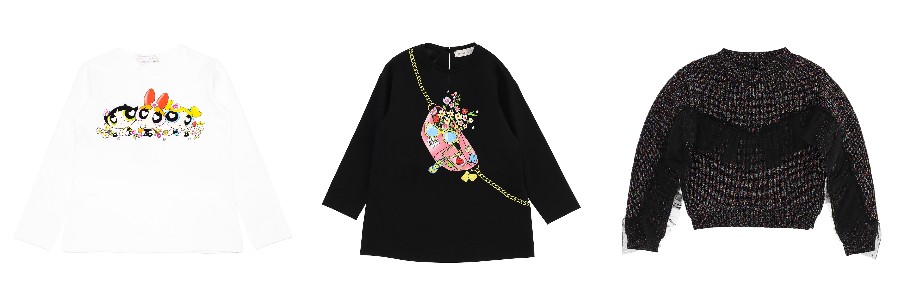 Еще один способ достичь гармонии в праздничном аутфите — собрать тотал лук в белом или черном цвете. Блестящая ткань, мультяшные рисунки, плиссировка выступят в качестве красочных акцентов.