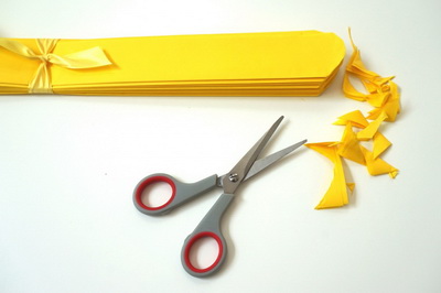 4. С помощью ножниц обрежьте концы "гармошки" полукругом или треугольником (в зависимости от того, какой формы лепестки Вы хотите получить).