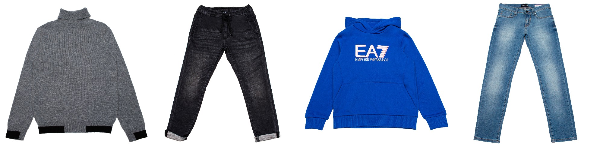 Брюки + водолазка (свитшот). Если температура за окном не опустилась до -10%, то одежда для прогулок с ребенком зимой может выглядеть так. Черные джинсы и водолазка из шерсти и кашемира. Либо голубые джинсовые брюки со свитшотом. В обоих случаях тело мальчика будет надежно защищено от непогоды.
