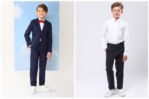 Универсальная фигура. Школьную одежду 2022 подобрать мальчикам со средним объемом груди и бедер не составит труда. Обратите внимание на базовый костюм двойку. И в пир, и в мир! В качестве второго комплекта рассмотрите прямые брюки со средней посадкой и белую рубашку. Важно: брюки не должны впиваться в тазовые кости, проследите за этим.