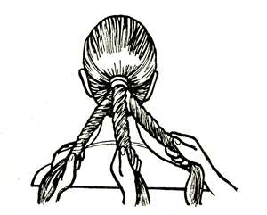 на три оборота. Перекрестить ее с той прядью, что находится в вашей правой руке