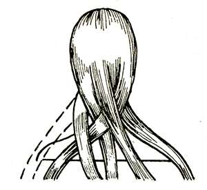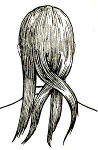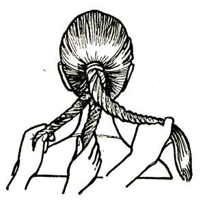 волос, одну с левого виска и одну с правого. Каждая прядь должна быть толщиной
