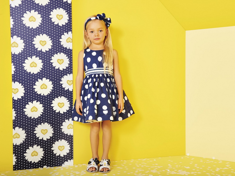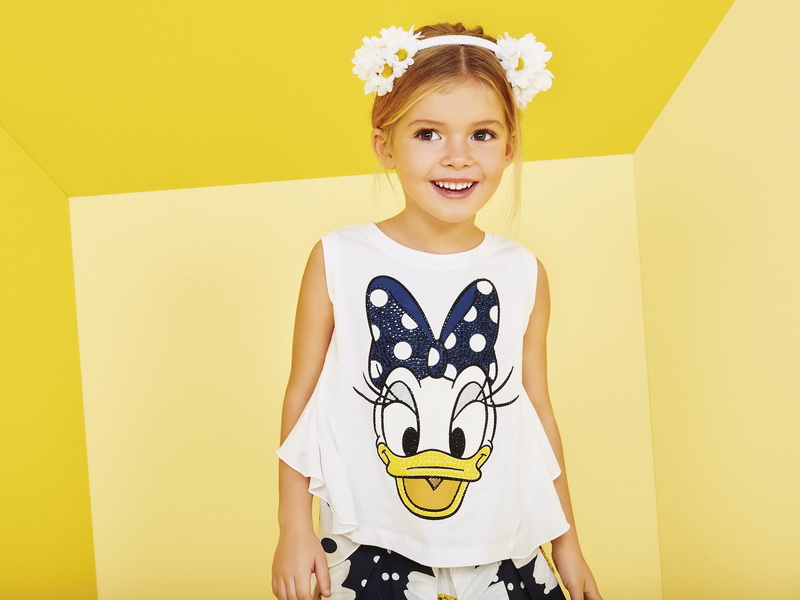 В элегантной линейке "Бон Тон" от Monnalisa Вы увидите контрастное сочетание белого, желтого и синего. Ромашковое поле, синие ткани в белый горошек, любимица девочек Dasy Duck. Образы, созданные дизайнерами, по-настоящему праздничные и солнечные, а ведь речь идет о детской одежде на каждый день!