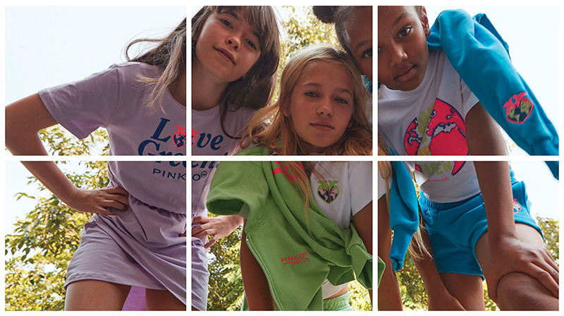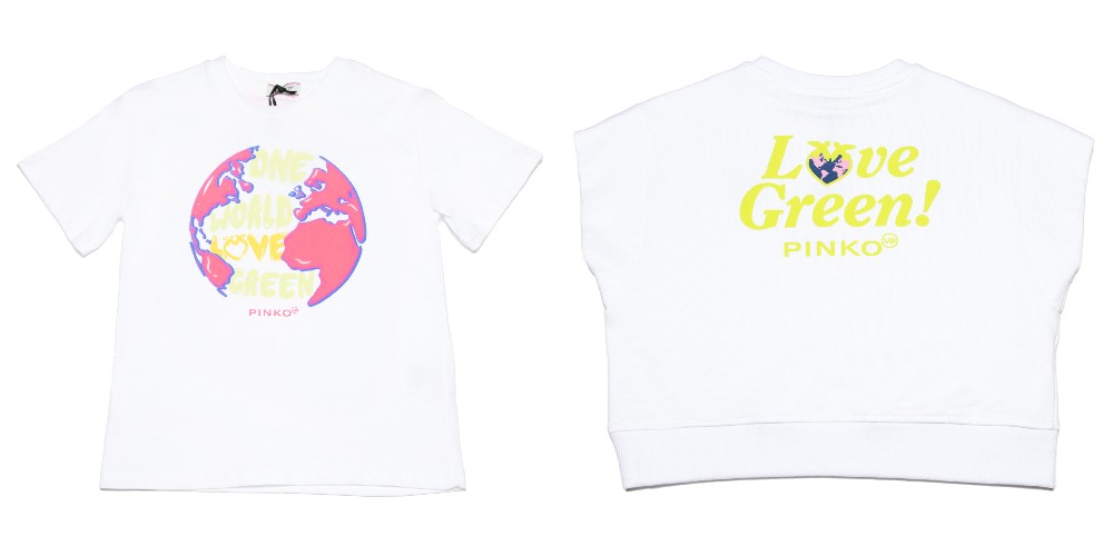 Love green. Рассказывая о новой коллекции Pinko Up нельзя упустить из виду пару интересных деталей. Это символы, призывающие оберегать и любить природу. Надпись love green, очертания планеты в детской одежде Весна-Лето 2023 расскажут окружающим о многом. Не только о том, что у вашей дочки хороший вкус, но и доброе сердце.