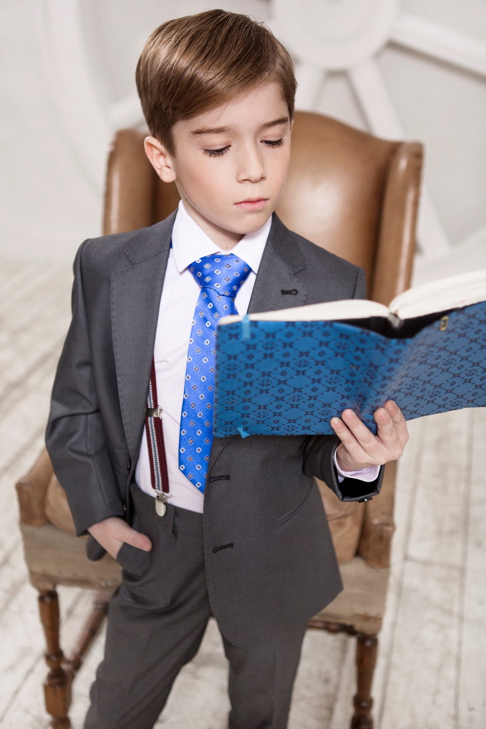 Дизайнеры рекомендуют дополнить образ аксессуарами, которые прекрасно сочетаются с классическими моделями. Для мальчиков деловой стиль можно разбавить дополнительными цветовыми акцентами такими, как яркие галстуки и бабочки. Эксклюзивный ансамбль помогут создать обыкновенные подтяжки. Девочкам предлагаются воротнички и манжеты, с использованием кружева или вышивки – такая ультрасовременная деталь «оживит» даже самый официальный комплект.