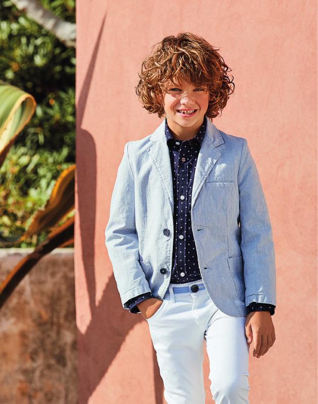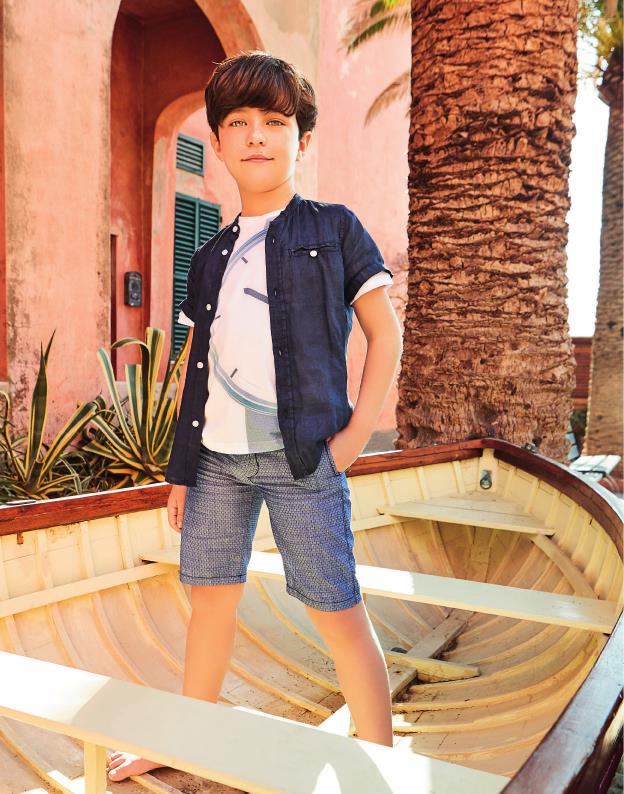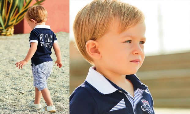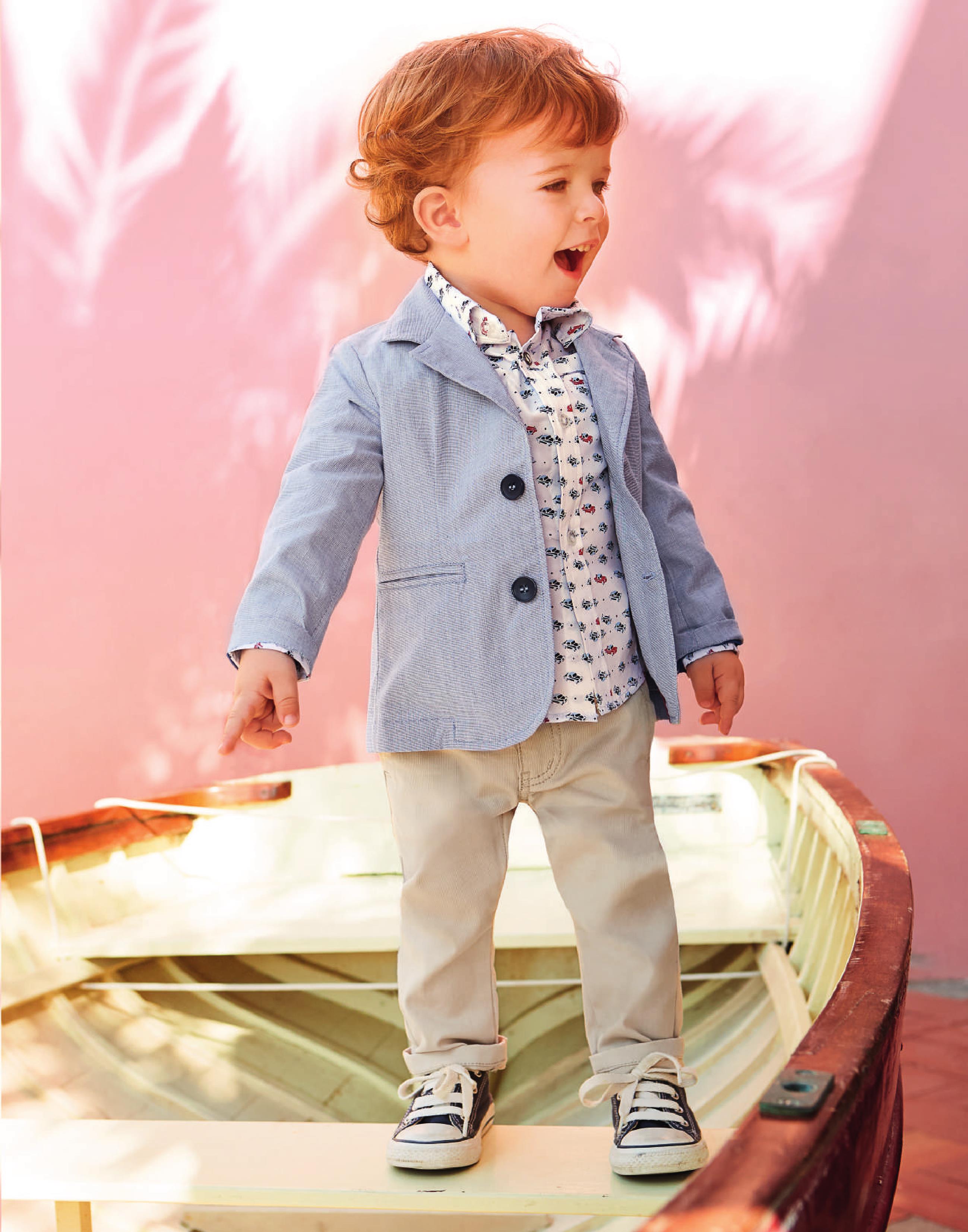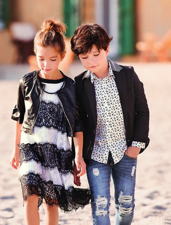 Одежда для юных джентльменов в новой коллекции создана в двух основных стилях: городской шик и casual. Первый характеризуется сочетанием легких брючек, строгих жилеток и нарядных рубашек. А для уличных прогулок подойдут рваные джинсы или шорты, майки с анималистическим рисунком и удобные кроссовки.