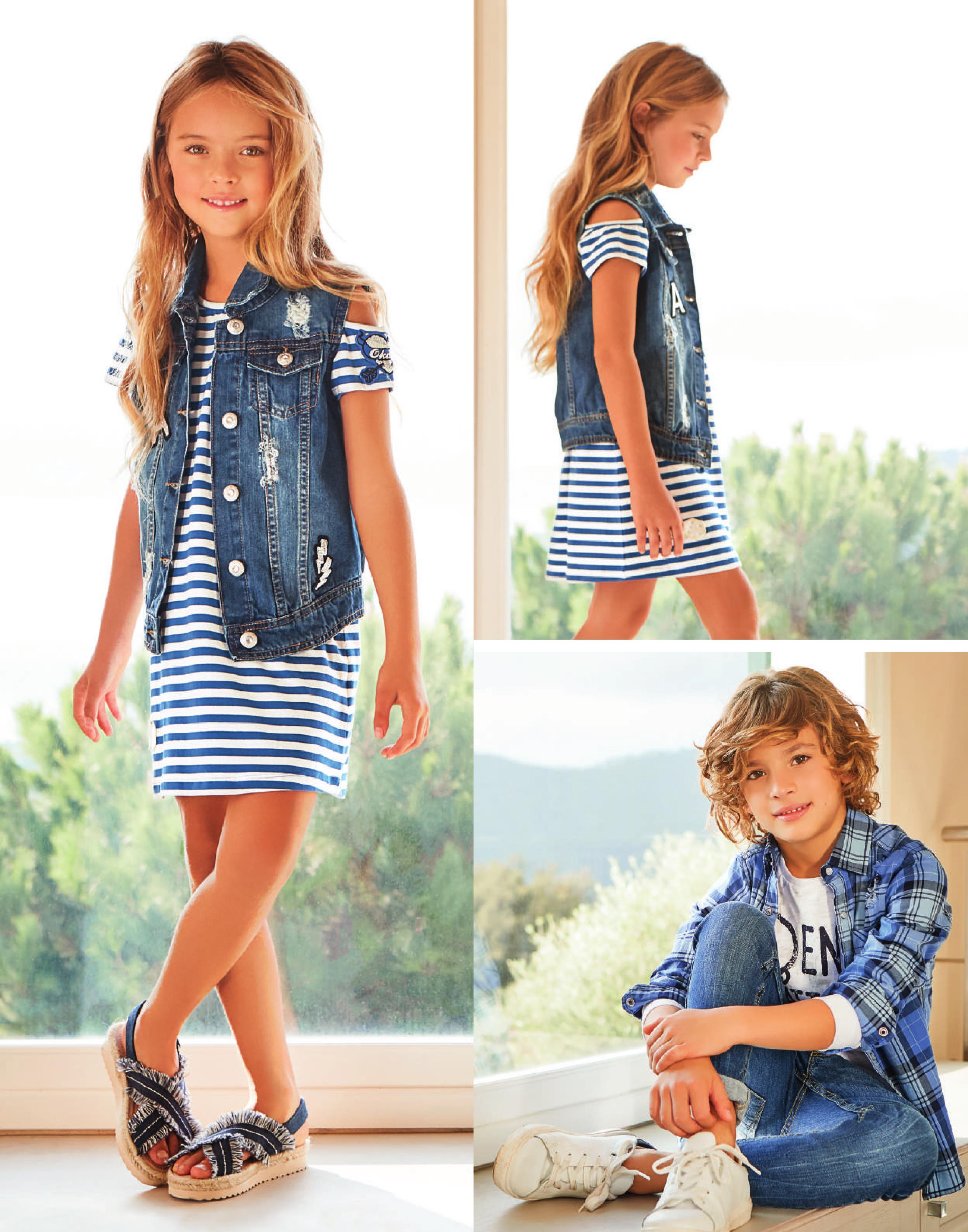 Шотландская клетка и морские полоски укрепили свои позиции в нынешнем сезоне. Главный секрет популярности таких геометрических тканей заключается в том, что на базе лаконичных линий удается создавать обширное многообразие эффектов и цветовых решений, которые украсят любой детский образ.