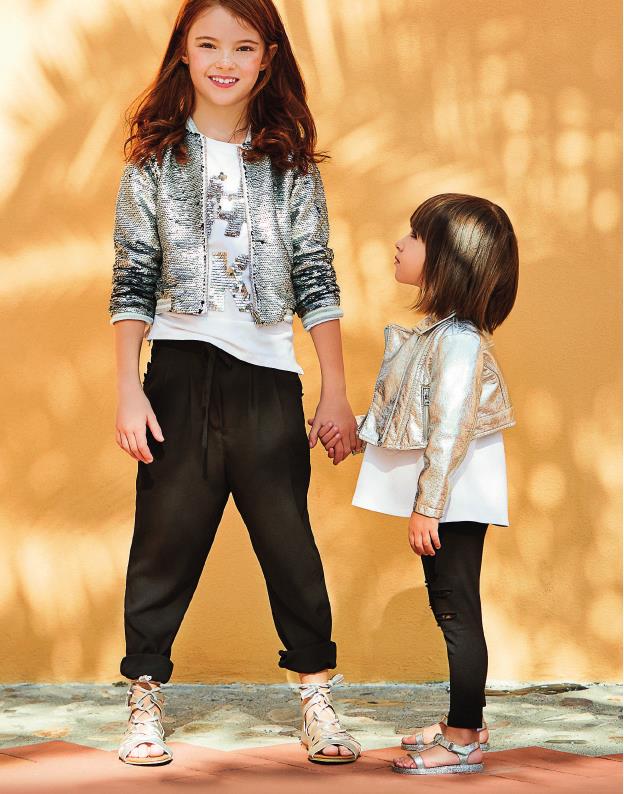 Среди новинок особенно следует отметить пиджаки, которые отлично сочетаются с классическим и спортивным стилем, кожаные куртки металлических оттенков, а также модели верхней одежды с пайетками. Кажется, что мальчики и девочки в такой одежде – это гости из далекого будущего, настолько необыкновенно и фантастично выглядят блестящие наряды.
