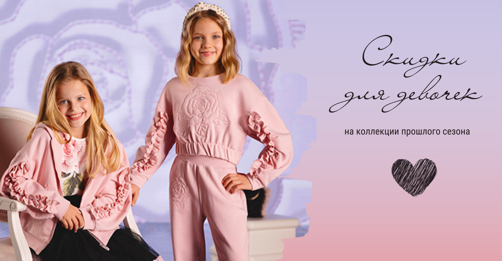 Мы рекомендуем обратить внимание на коллекции прошлого сезона Sarabanda, Minibanda, Pinko, Superga. Также сейчас выгодно можно купить верхнюю одежду для девочек TreApi, Clix, BABY A, HUGO BOSS.