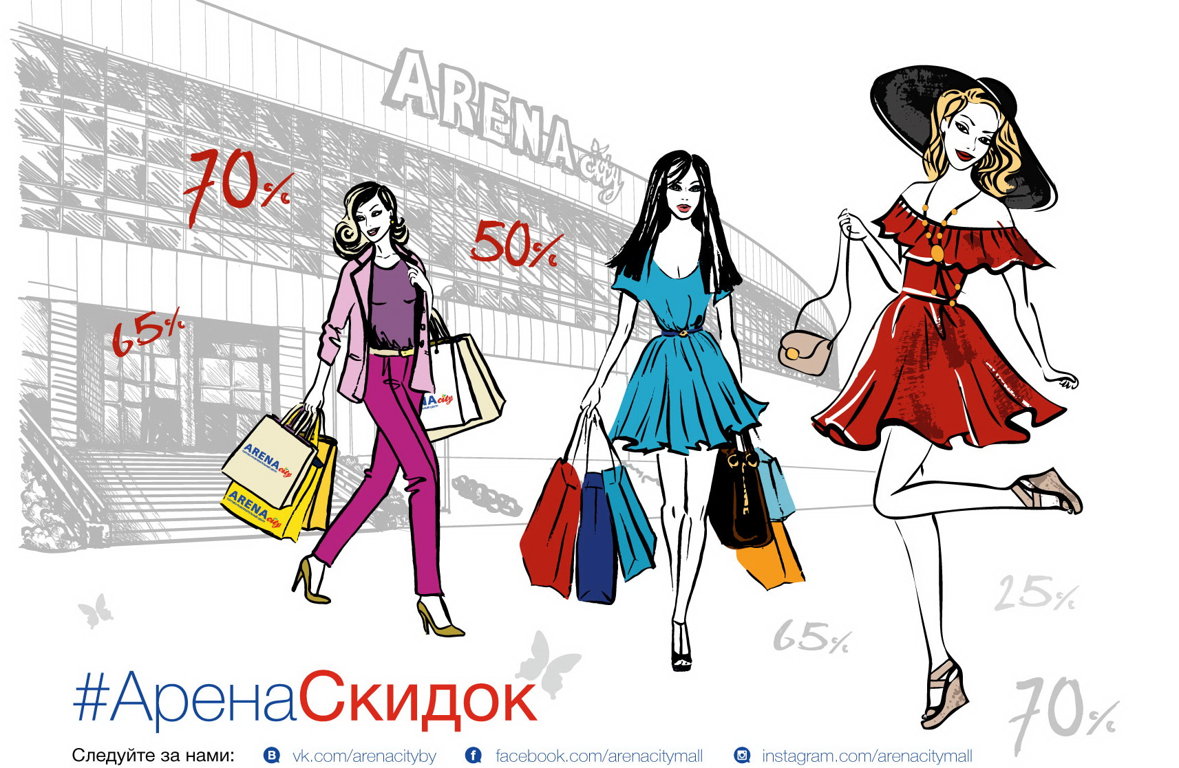 Очень большие скидки ждут Вас во всех магазинах торгового центра "Арена Сити" с 23 по 26 июня 2016 года в рамках акции "Большая распродажа".
