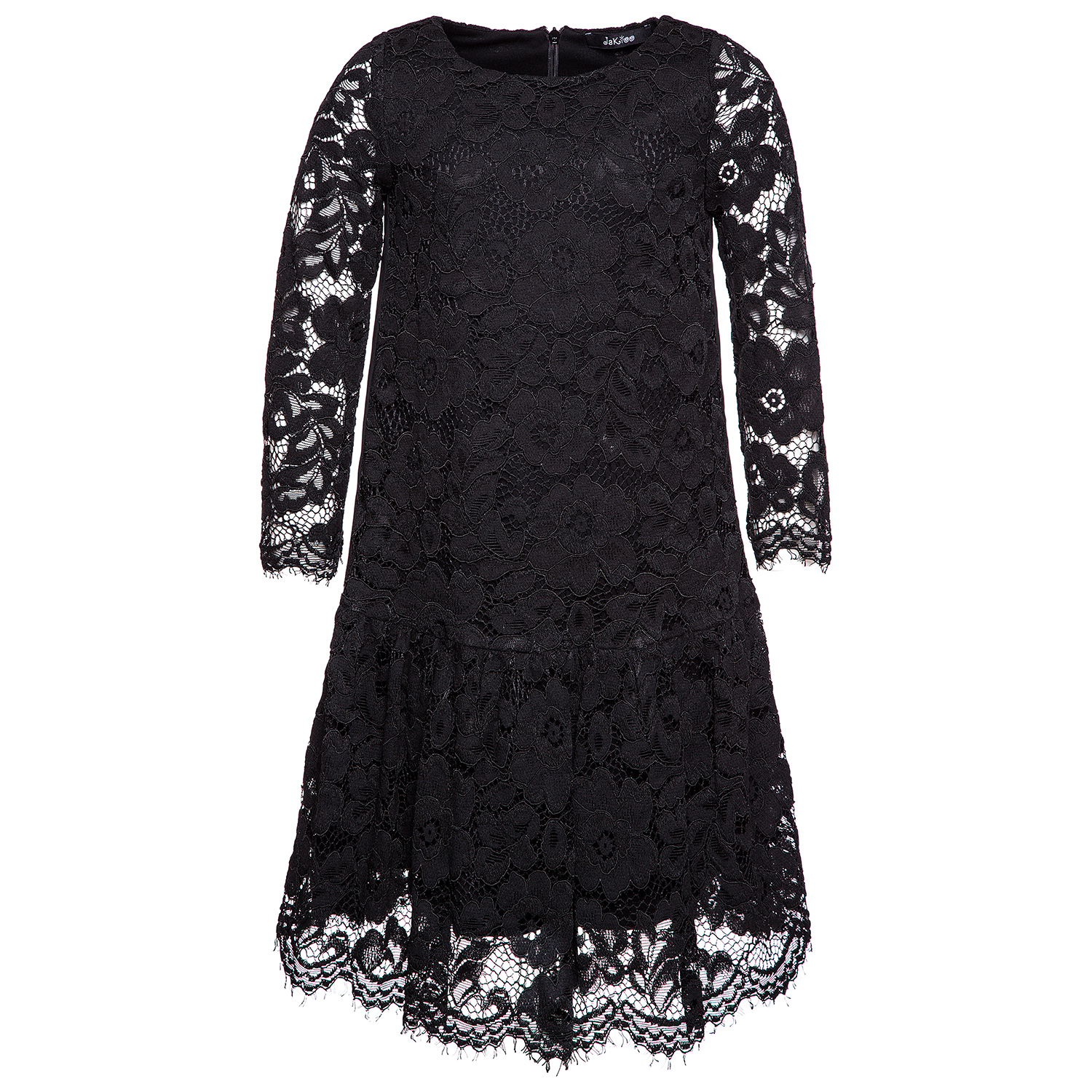 Фасон "отрезное по линии бедер", силуэт прямой, кружево, застежка на спинке изделия-"молния".