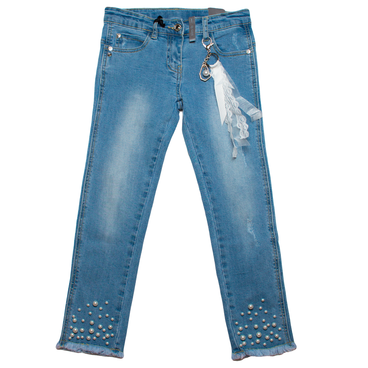 Силуэт "slim fit", модель "5 карманов", декор- "жемчуг".