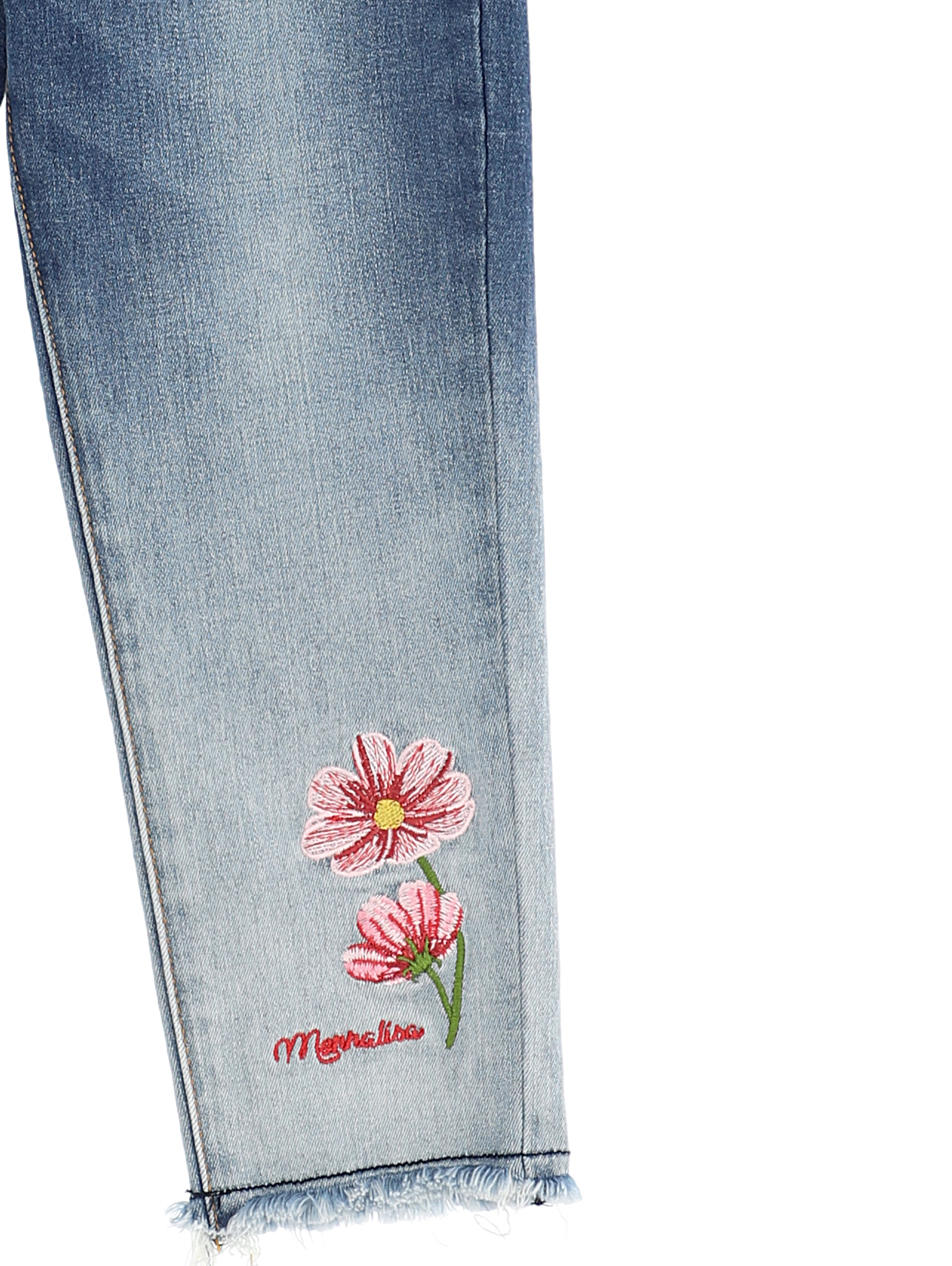 Модель "5 карманов", высокая посадка, регулируемый объем талии, зауженные к низу, принт - "Цветы"..