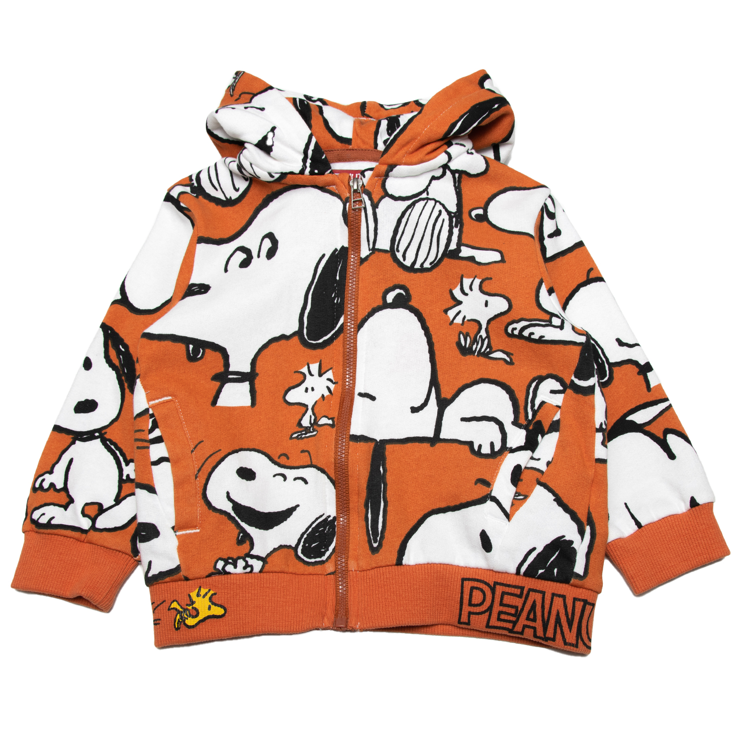 Модель прямая, с капюшоном, рукава и низ на манжетах, застёжка - молния, принт - Снупи, трикотажный..