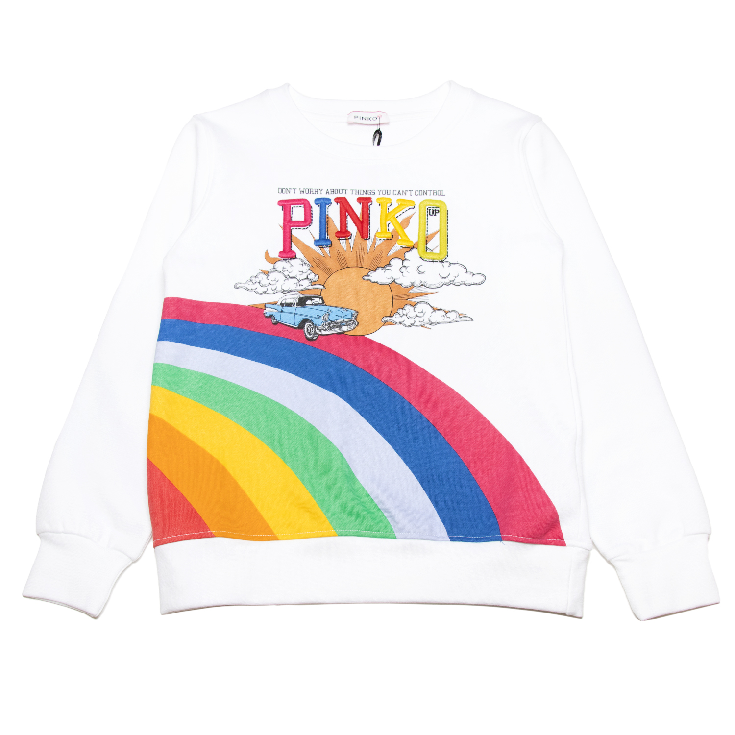Модель прямая, рукава и низ на манжетах, разноцветный принт, трикотажный.