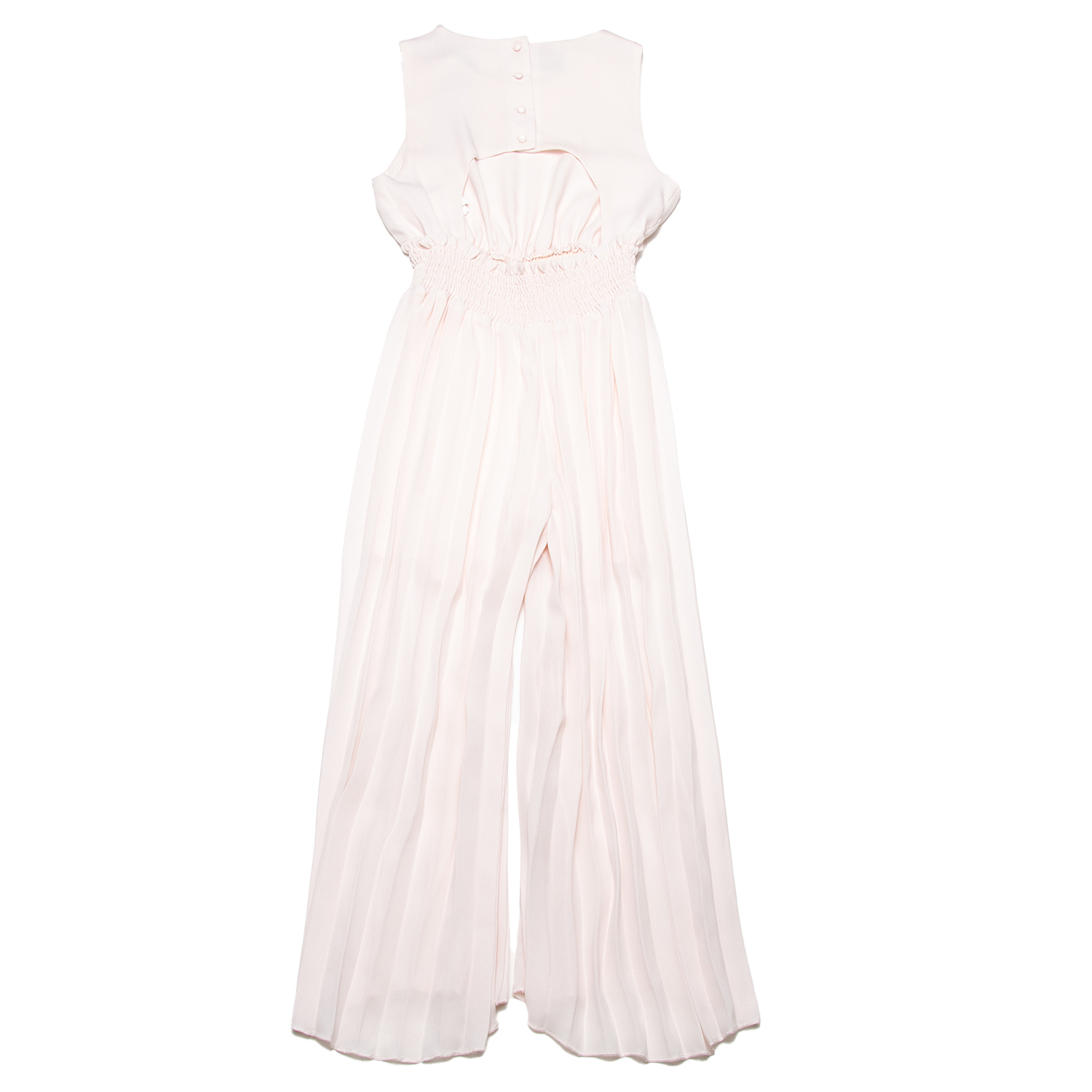 Модель приталенная, застёжка сзади на пуговицах, пояс на резинке, с открытой спиной, швейный.