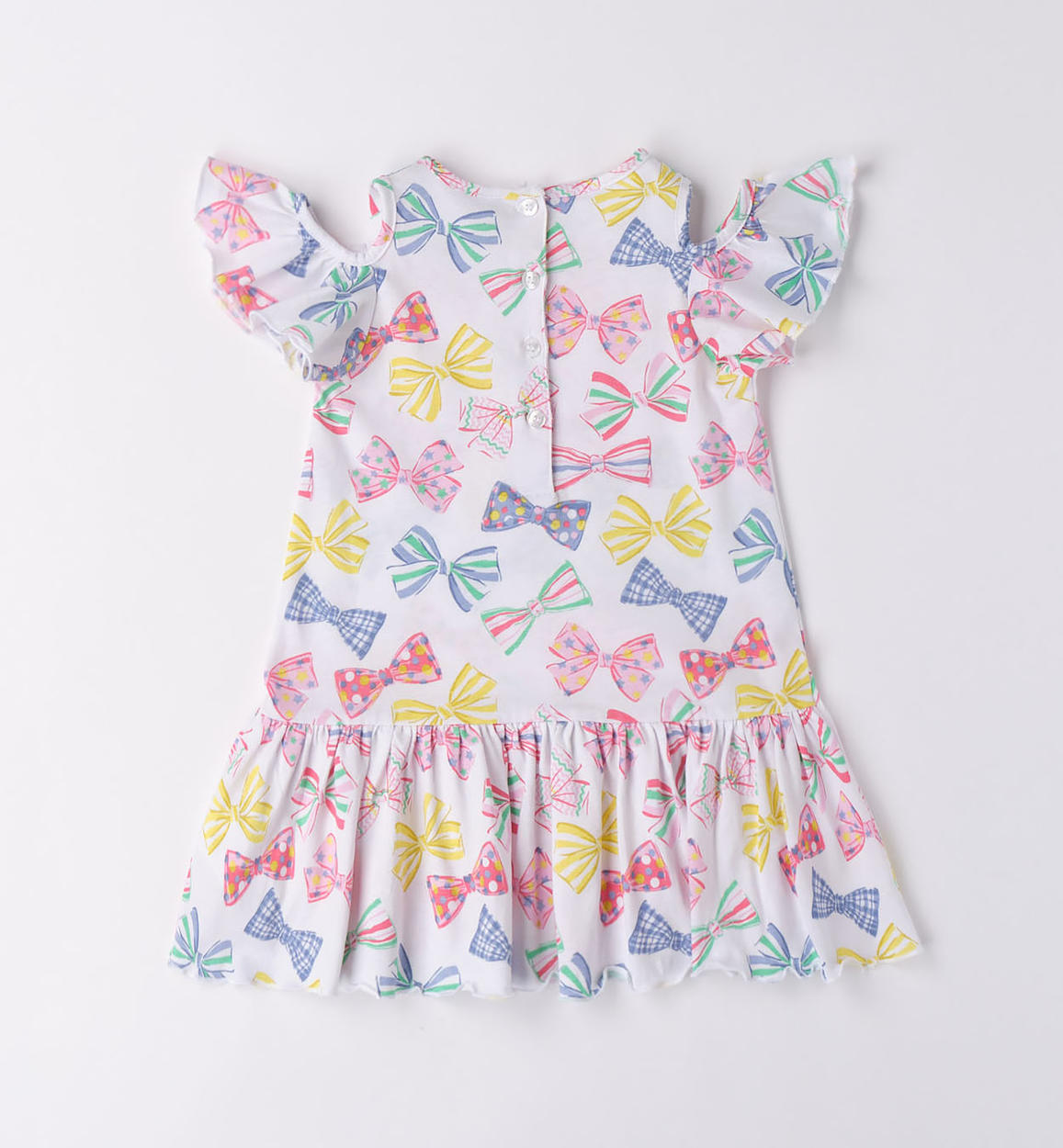 Модель трапеция, низ волан, застёжка сзади на пуговицах, длина до колена, трикотажное.