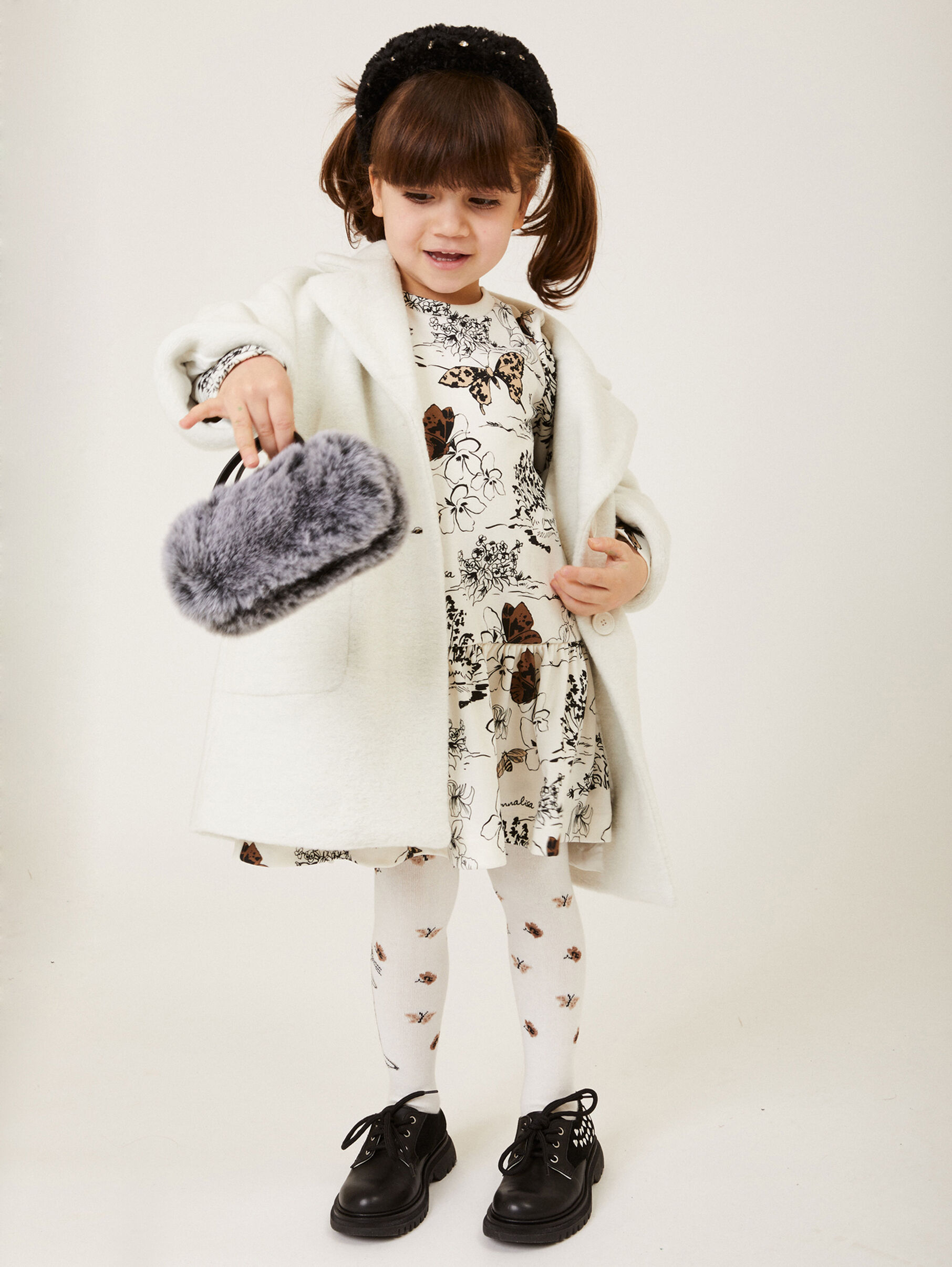 Модель трапеция, длинный рукав, длина до колена, низ волан, принт бабочки, трикотажное.