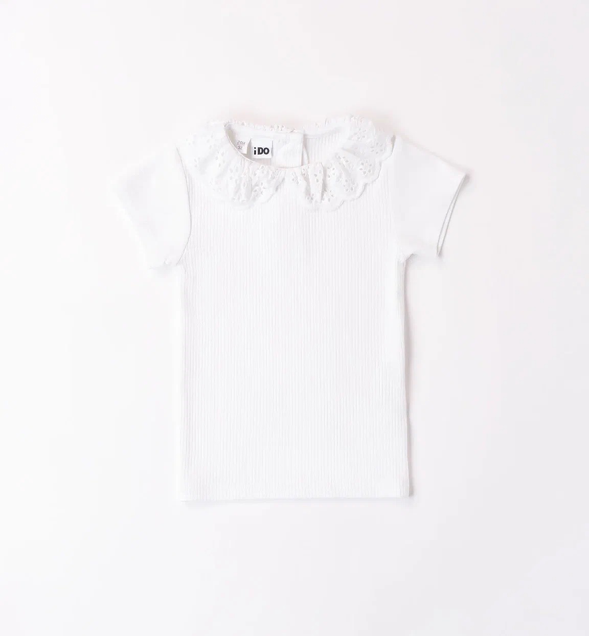 Модель прямая, застёжка сзади на пуговицах, декор воротник кружевной, трикотажная.