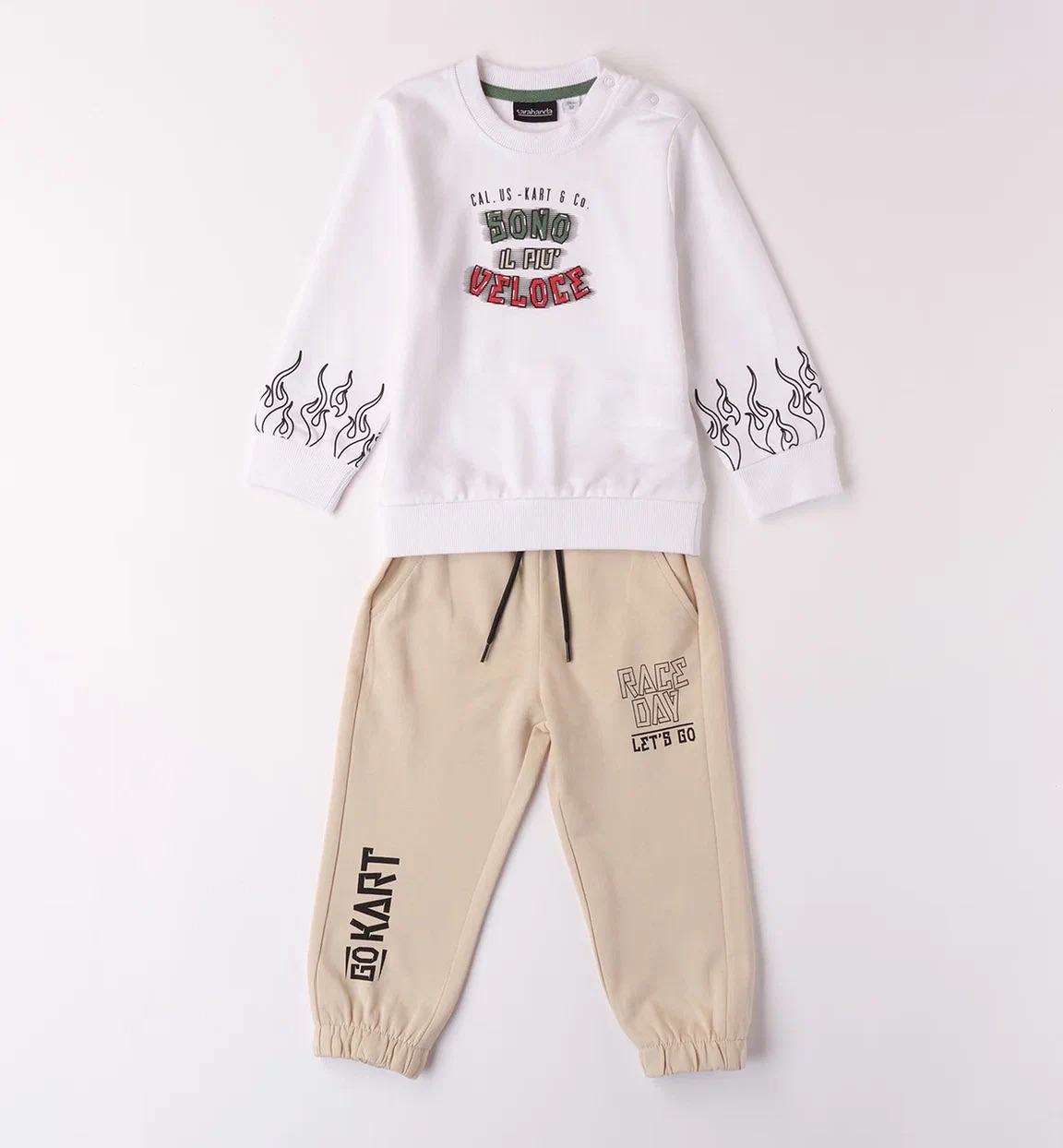 Свитшот- силуэт прямой, рукава и низ на манжетах, трикотажный. Брюки -пояс и низ на резинке, трикотажный.